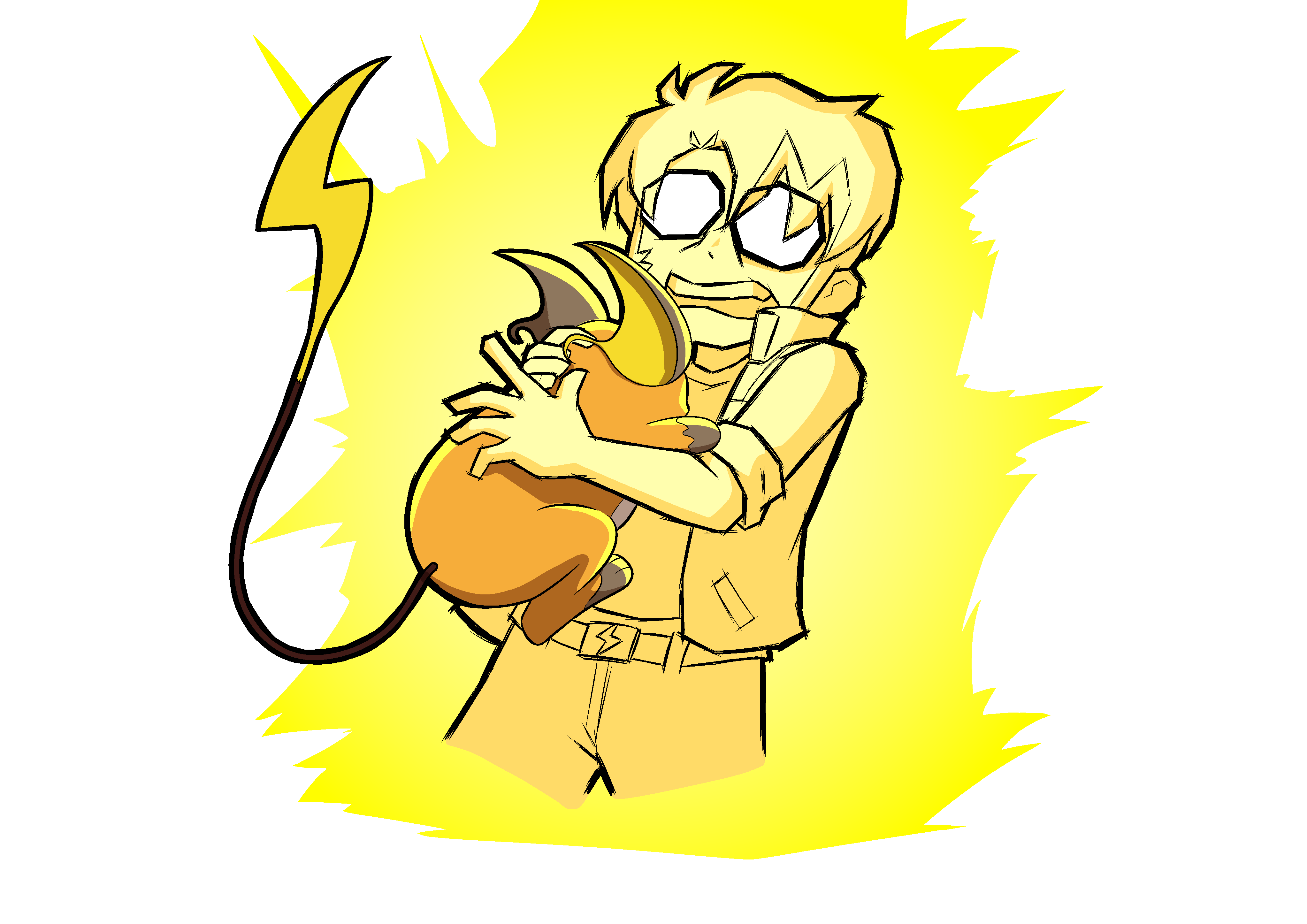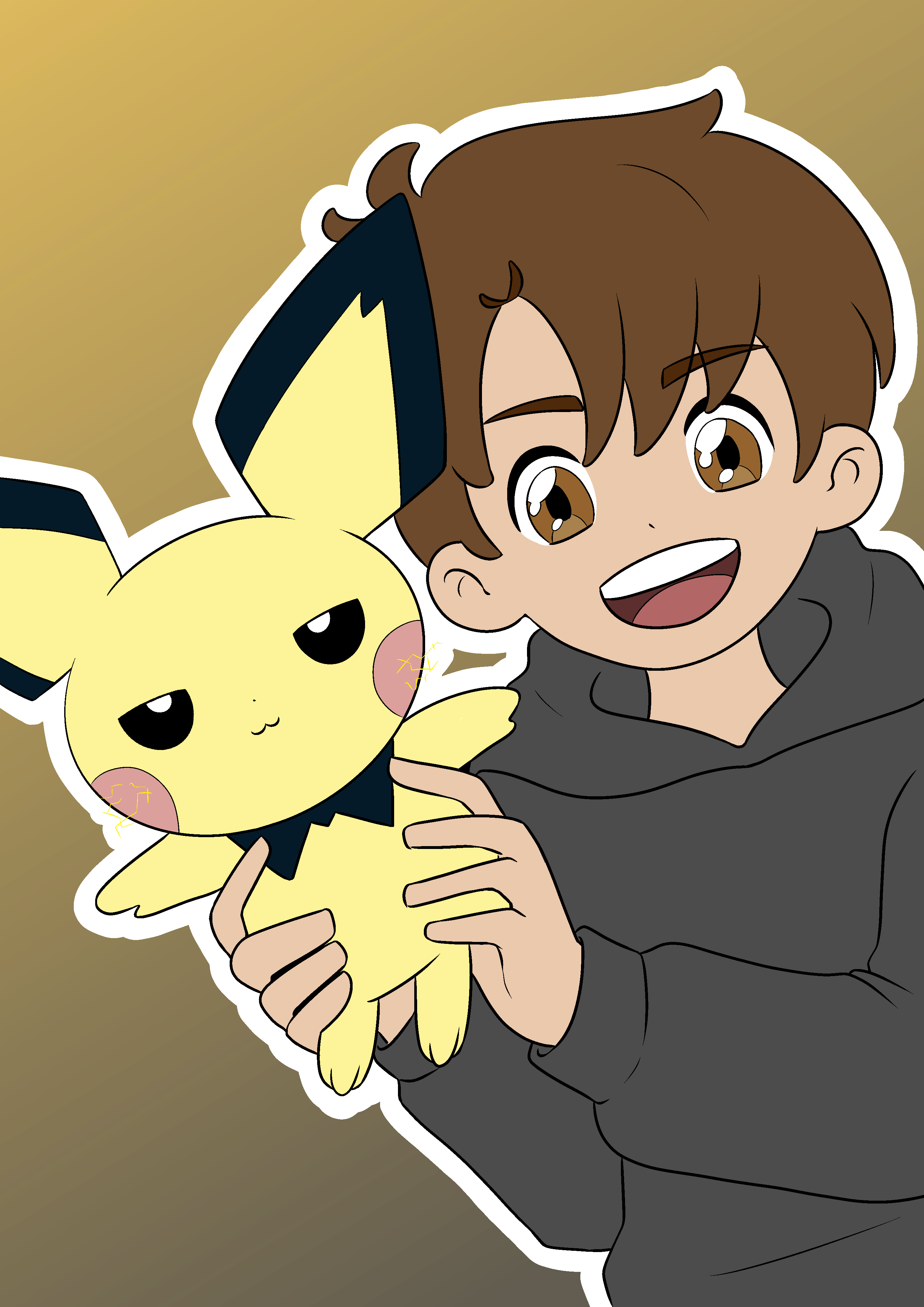 He was young too, once. Well, younger than he is currently. And his beloved Raichu was yet only a Pichu. You'll notice the ends of his hair are rounded instead of pointy, and that's normal! He had yet to be electrocuted. This picture was taken seconds before he was about to acknowledge this new part opf his life.
